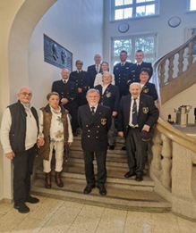 Abordnung der MOS Bremerhaven zu begrüßen, und würdigte die 14-jährige Patenschaftsbeziehung der Stadt Mülheim zur MOS.
